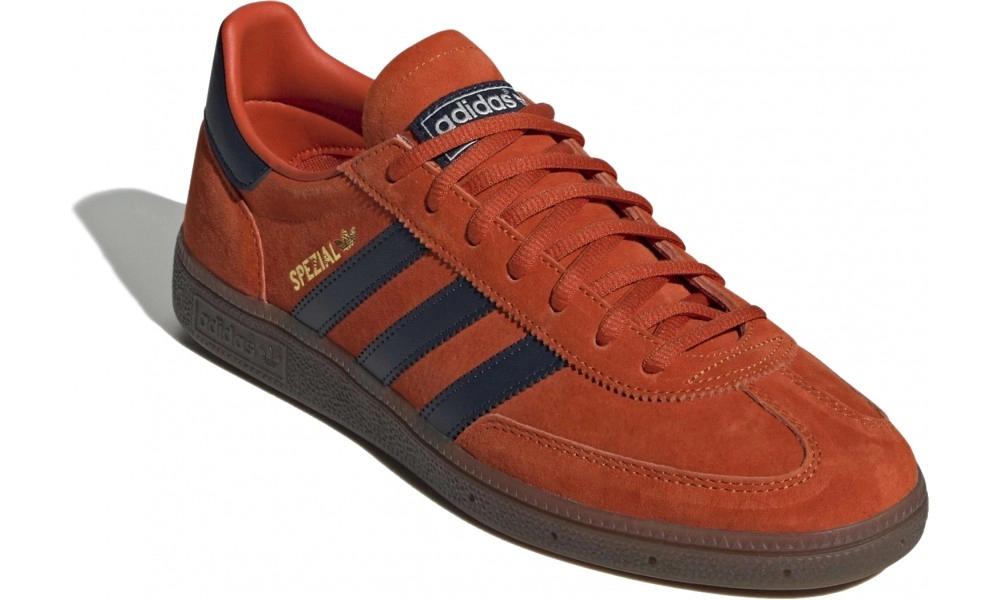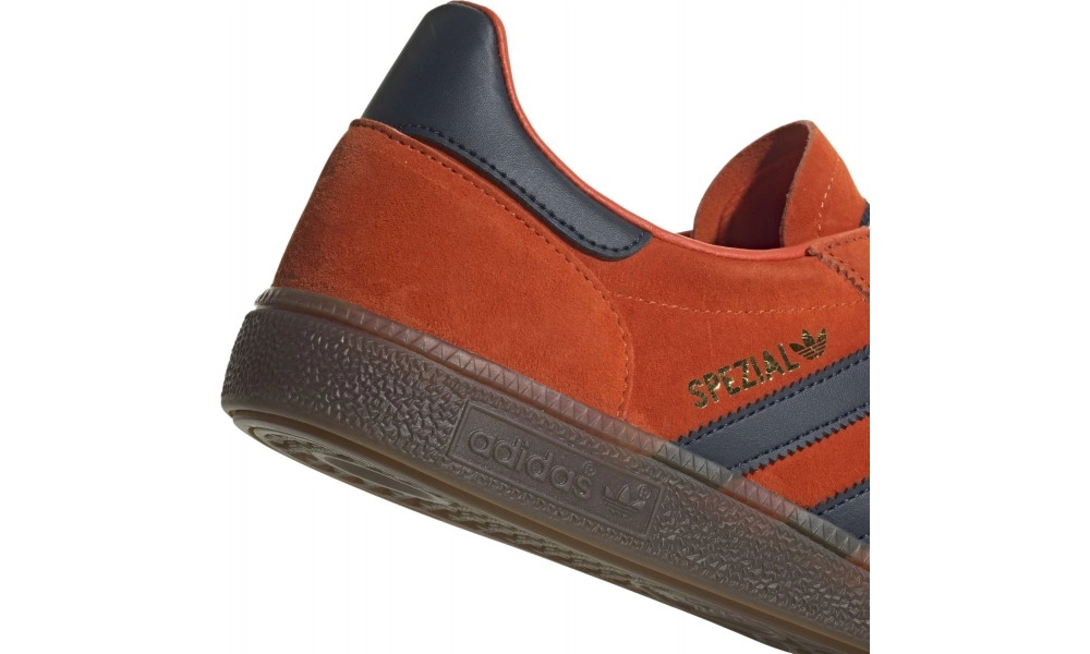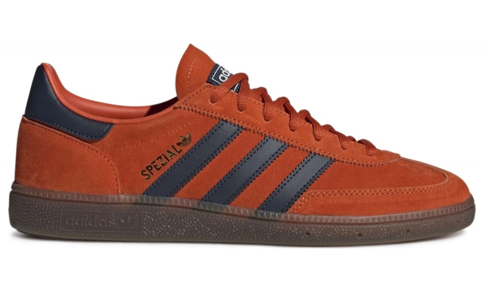 - Логотип: три полоски, трилистник Adidas, золотистая надпись Spezial