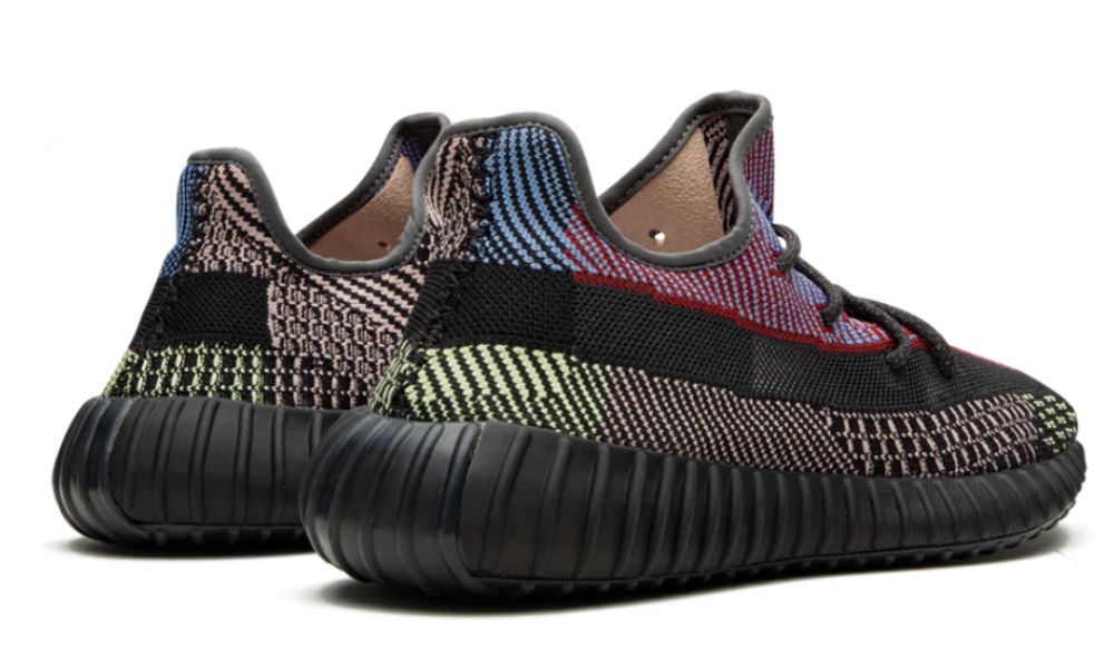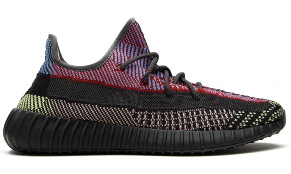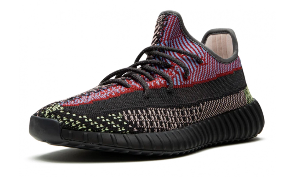 Цветовая гамма – это смелый микс красного, синего, чёрного и белого оттенков, создающий эффектный контраст. Принт с ломаными полосами и фирменный боковой логотип Yeezy подчеркивают уникальность модели.